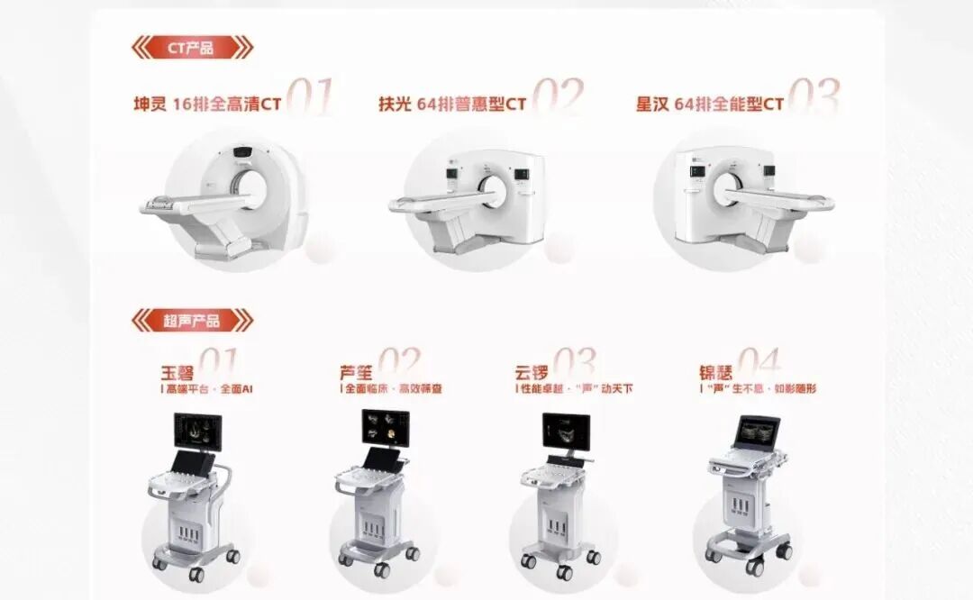 在产品线布局方面,国药影像通过自主研发、产品导入、合作研发等方式,补齐128排、256排CT、POC专科超声、超高端超声、中高端磁共振等影像设备产品线,提供医疗影像的整体解决方案。