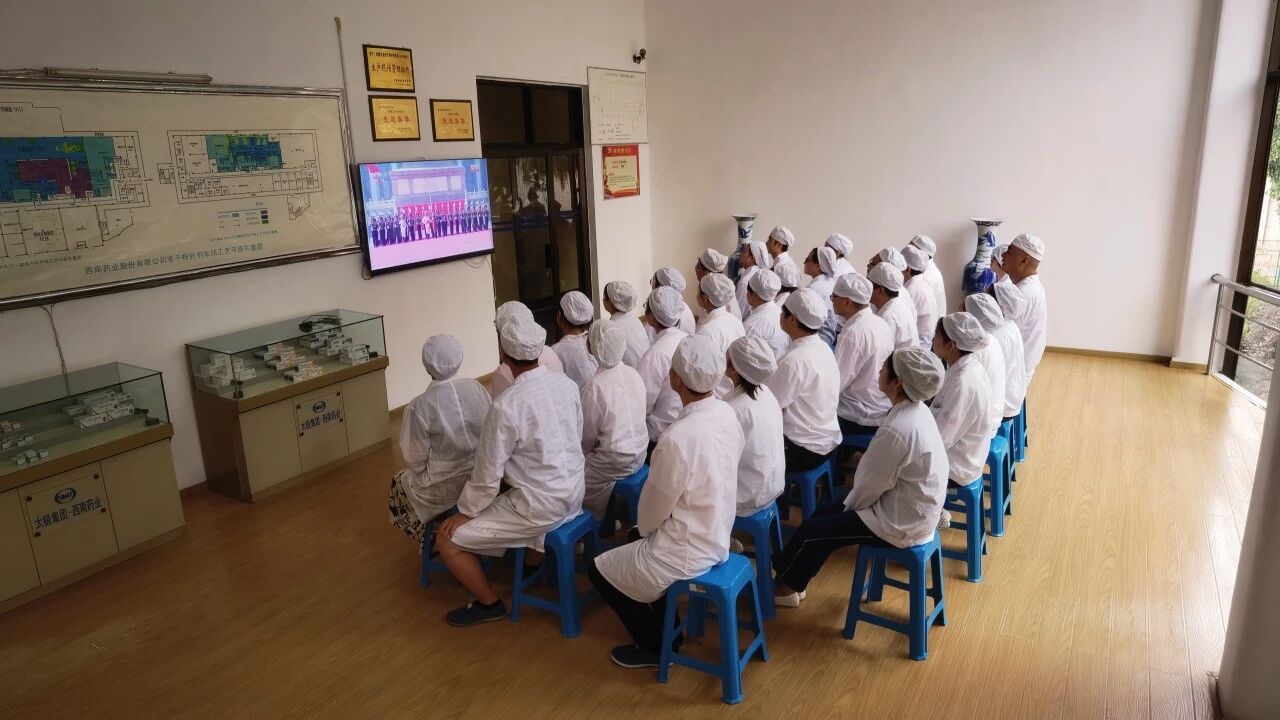 纪念中国人民抗日战争暨世界反法西斯战争胜利80周年大会在北京天安门广场隆重举行,国药集团干部职工集中收看大会直播盛况,国药集团德众(佛山)药业有限公司高明分公司车间职工收看大会盛况在江西南昌。