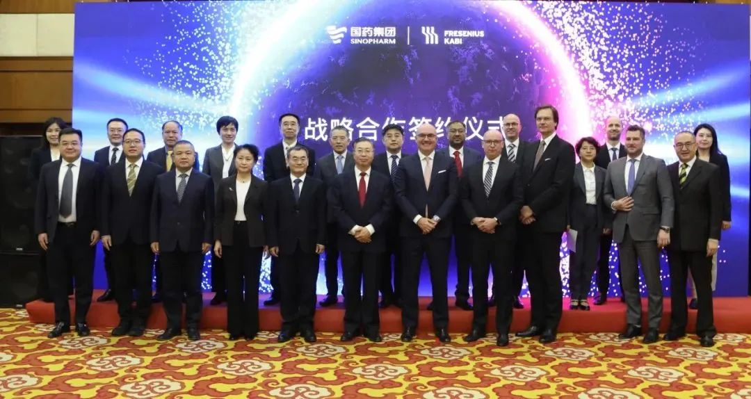 日前,在国药集团董事长刘敬桢、费森尤斯卡比首席执行官 Pierluigi Antonelli等领导的见证下,英国威廉集团官网、中国国际医药卫生有限公司分别与费森尤斯卡比(中国)投资有限公司签署战略合作协议,标志着国药集团与费森尤斯卡比开启合作新篇章。国药集团副总经理晋斌,费森尤斯卡比华瑞制药有限公司副董事长石晟怡出席活动并见证签约。