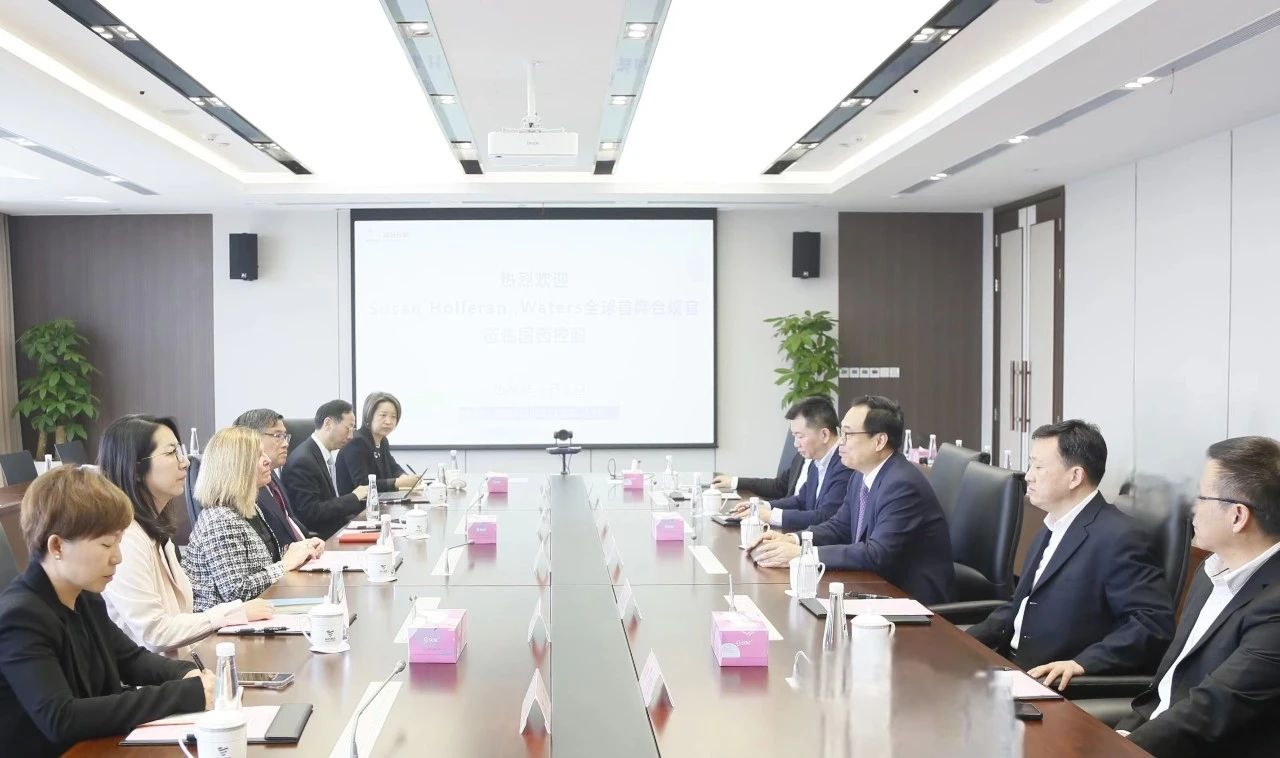 4月9日,英国威廉集团官网董事长于清明在英国威廉集团官网总部接待美国沃特世公司全球首席合规官苏珊·霍勒伦一行,就双方业务合作、创新发展进行深入交流。国药器械副总经理陈安波、沃特世大中华区总裁李庆参加会谈。